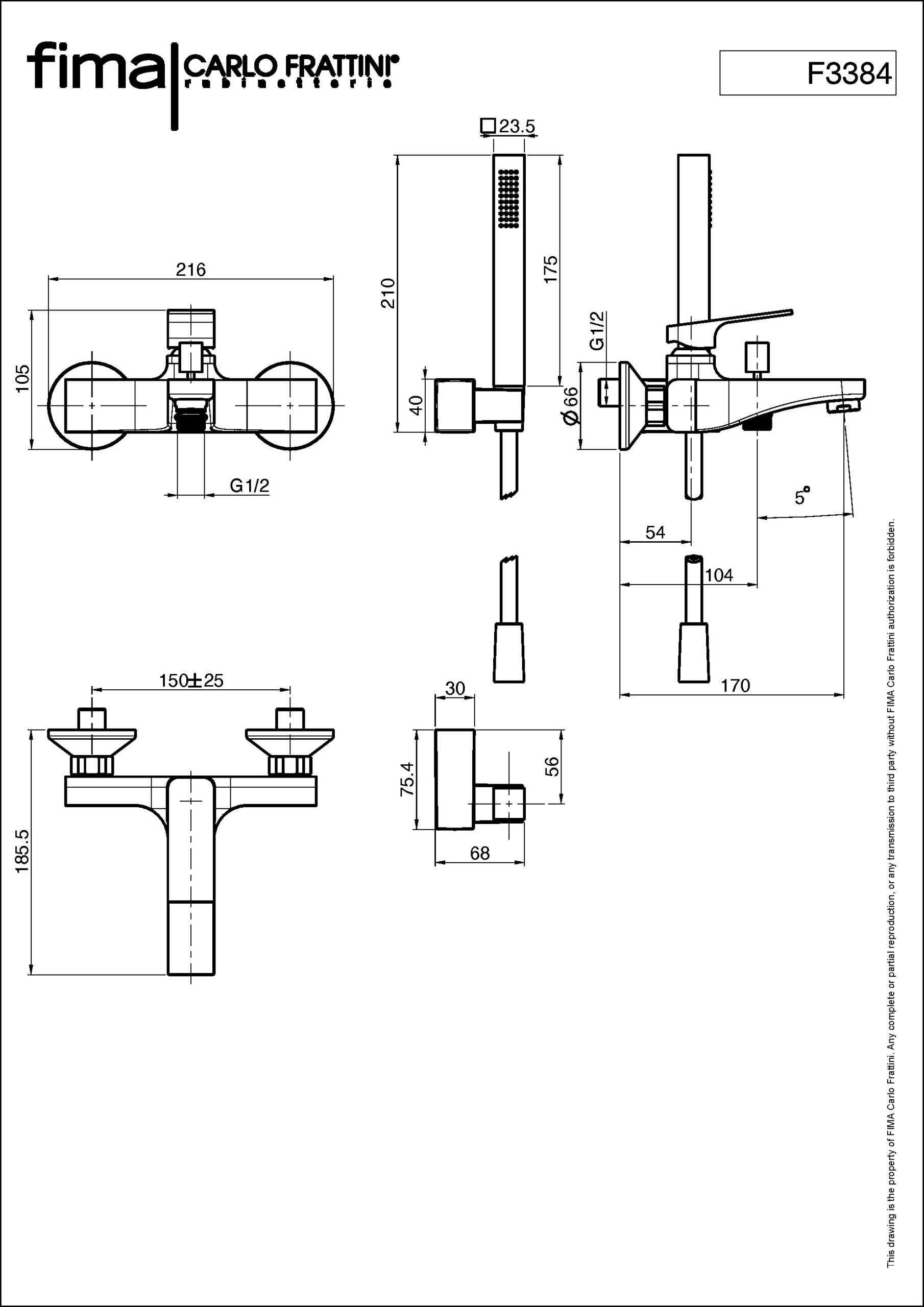 Single lever bath and shower mixer for concealed installation 2 outlets with shower set