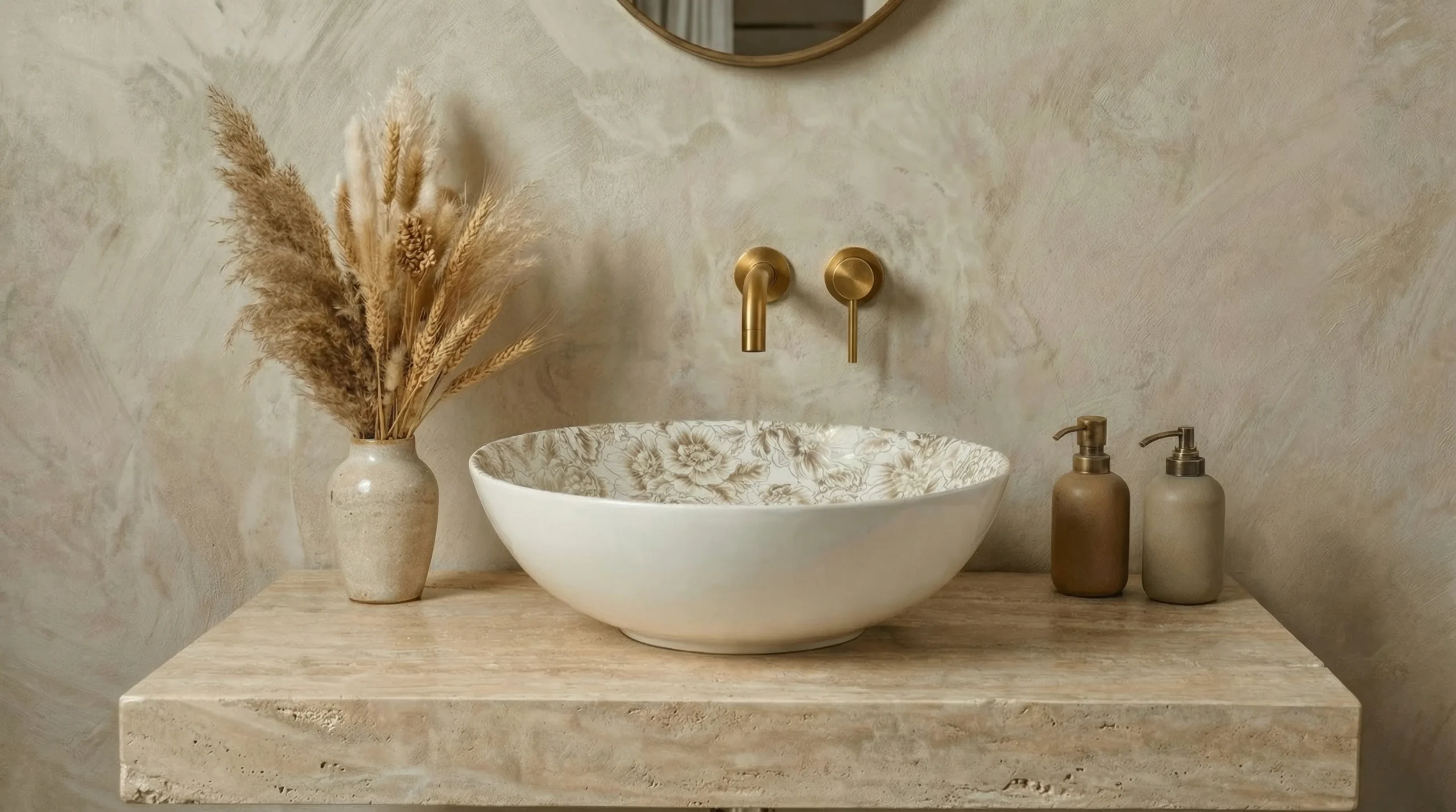 Inspired by the intricate floral patterns and golden tones. "Oro" means gold in ItalianAn intricate botanical pattern applied to the interior surface of a white ceramic bowl. The design IS copperplate engraving, featuring highly detailed sketches of large blooming flowers (resembling roses or peonies) and abundant foliage. The motif is rendered in a metallic gold or soft bronze hue against a stark white background, using fine hatching lines to create shading and texture.